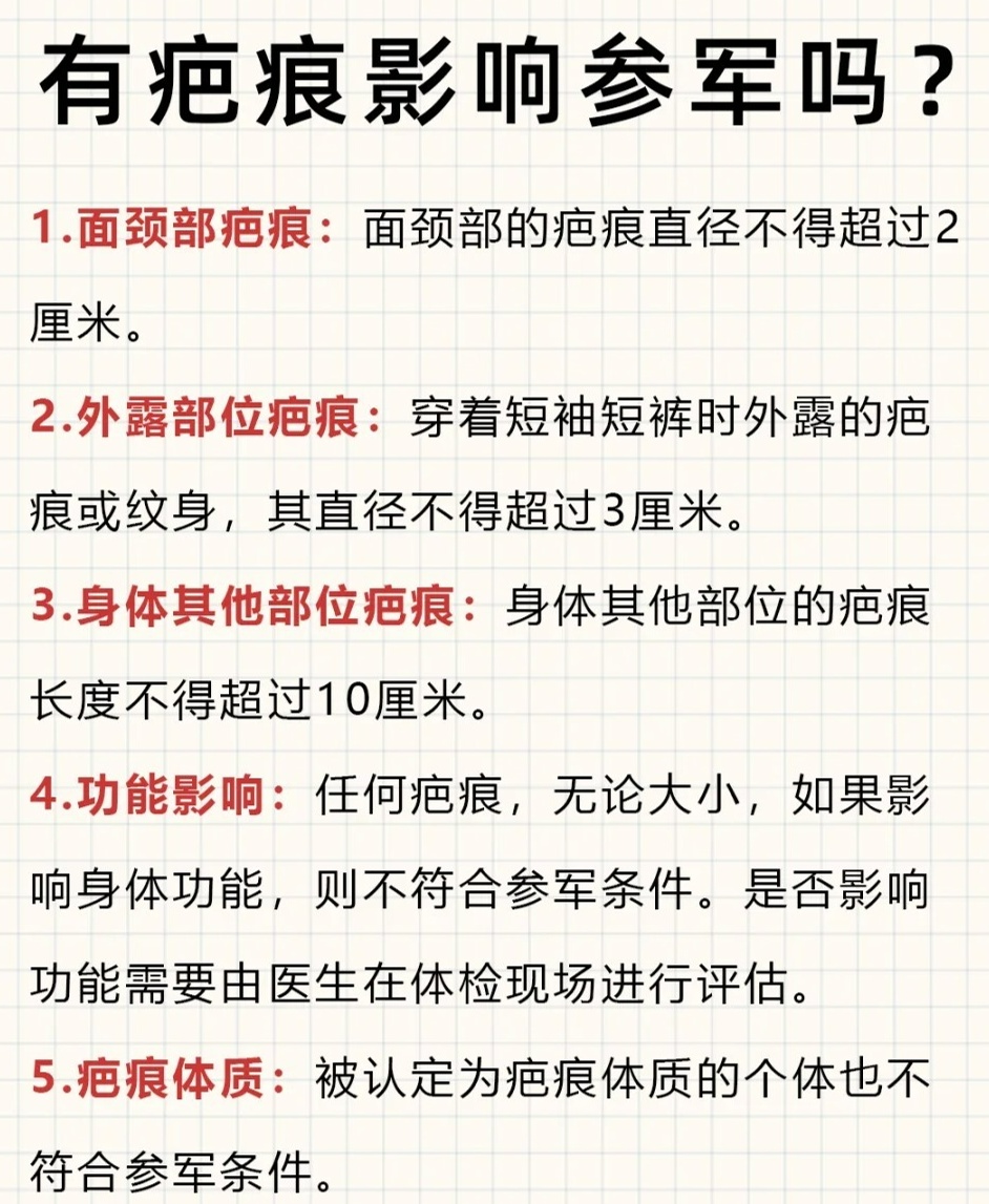 什么樣的疤痕不能當(dāng)兵?深度解析征兵體檢標(biāo)準(zhǔn)中的疤痕要求,征兵體檢標(biāo)準(zhǔn)中的疤痕要求深度解析,哪些疤痕影響當(dāng)兵資格?