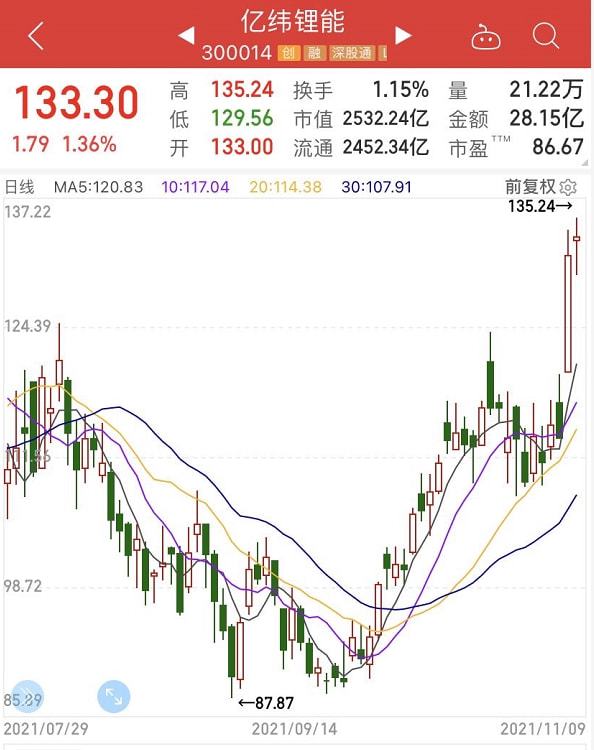 億緯鋰能股票表現(xiàn)
